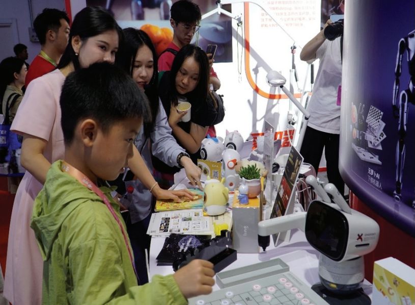 图为小朋友在体验内置AI的陪伴产品。唐 瑞 摄